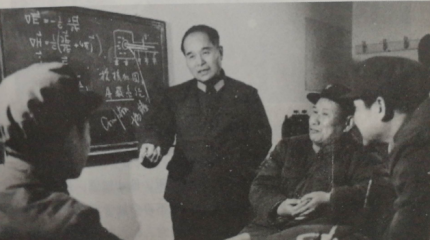 20世纪80年代,程开甲(左二)在研究抗辐射加图工作